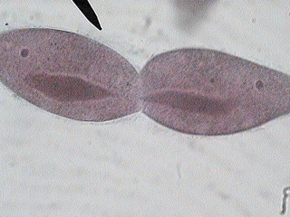 The picture below shows how the paramecium will split in half. You will not need to view a video of this to answer the question on your assignment.