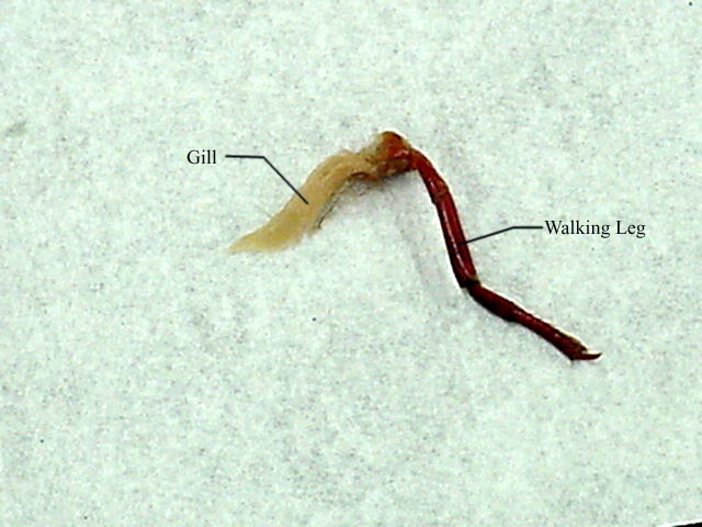 2. Detach one of the walking legs, and note the small gill that is attached to the leg.