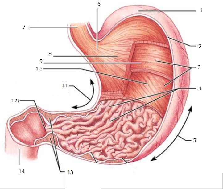 1. Trace the digestive system from the mouth through the esophagus to the cardiac stomach, where the food is ground up.