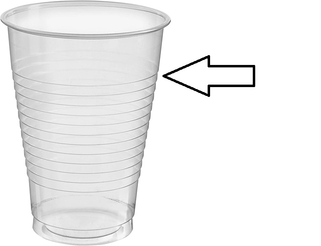 1. Fill the plastic cup with water to the top of the ridges on the cup as shown in the picture below.