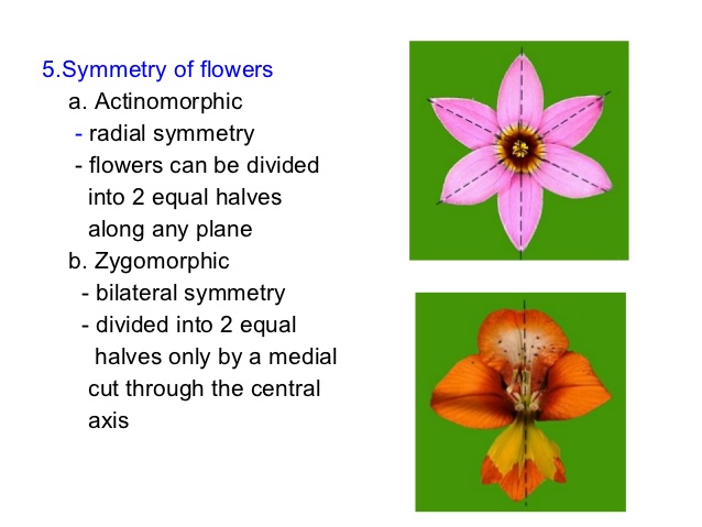 Flowers that exhibit bi-lateral symmetry are said to by
