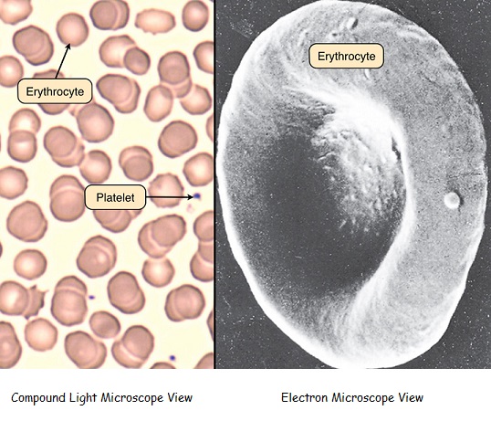 * Compare and contrast the compound light microscope and electron microscope views of blood cells.