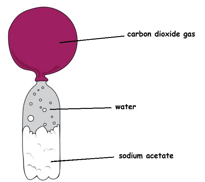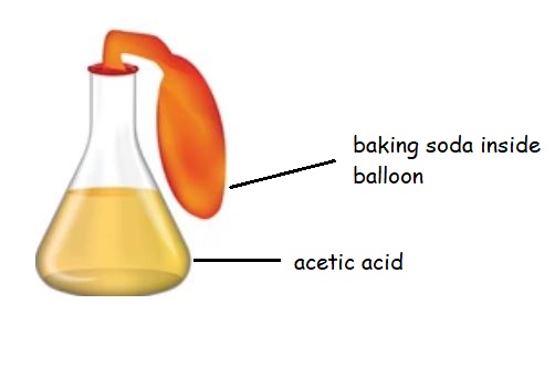 Carefully tip the balloon up so that the baking soda falls into the acetic acid. Observe what happens for a minute or so, and then answer question #21 on your review.