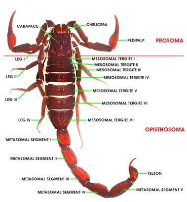 These are the scorpions, spiders, mites, horseshoe crabs, and "sea spiders."