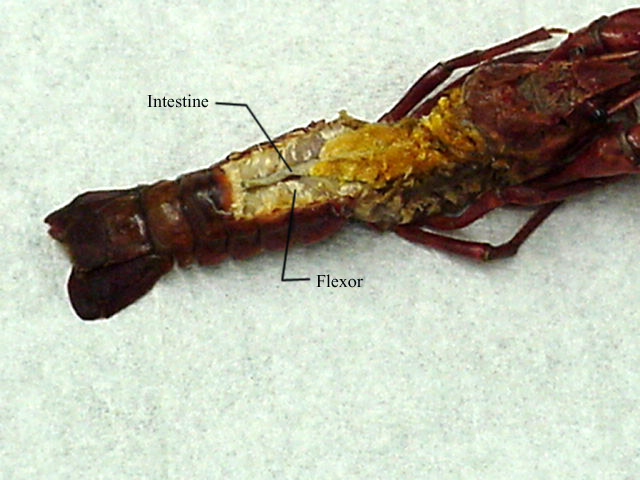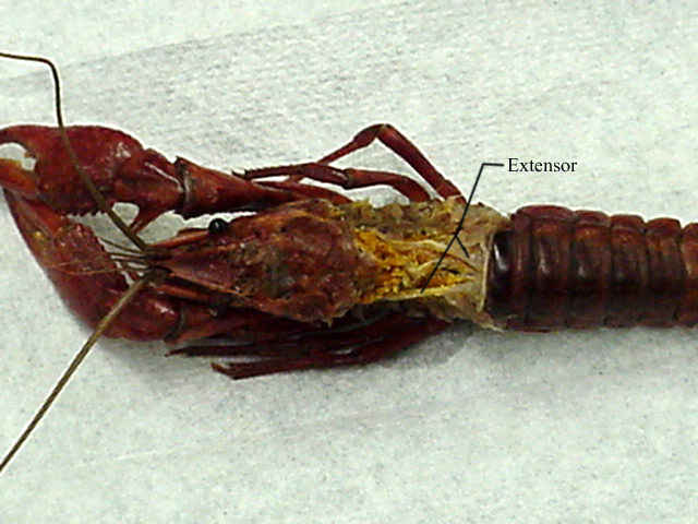 1. Note the extensor muscles, which straighten the tail, and the flexor muscles that curl up the tail and fill the abdomen of the crayfish.