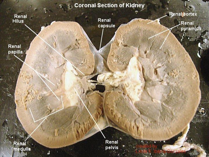 Make a frontal (or coronal) dissection cut through the kidney. Follow the procedure discussed in class prior to the lab.